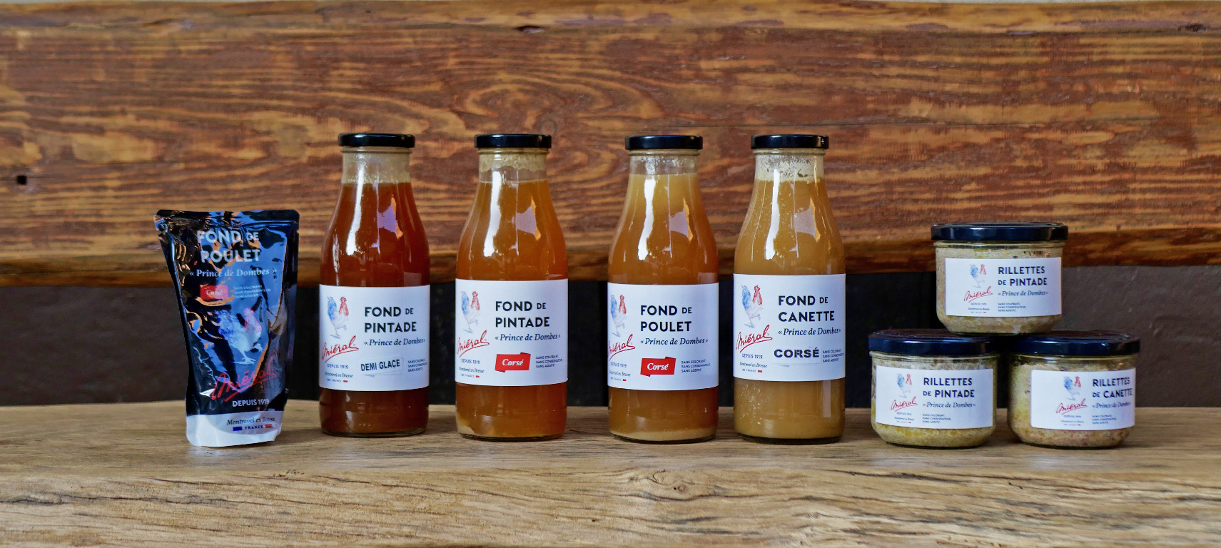 Préparés à partir de viandes et de carcasses de nos volailles, d’eau, de carottes, d’oignons, de poireaux, de vin blanc, de thym, de laurier et de clous de girofle et de poivre en grain, nos fonds concentrent la richesse aromatique de nos volailles.